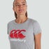 Look and feel stylish off the rugby pitch in our casual women's logo t-shirt in navy. Made with a soft cotton blend and ribbed neck it provides ultimate all day comfort for any activity. A large Canterbury logo graphic in the middle of the chest lets you show your love of the game with pride and passion.